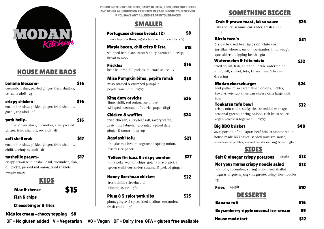 Modan Kitchen Menu